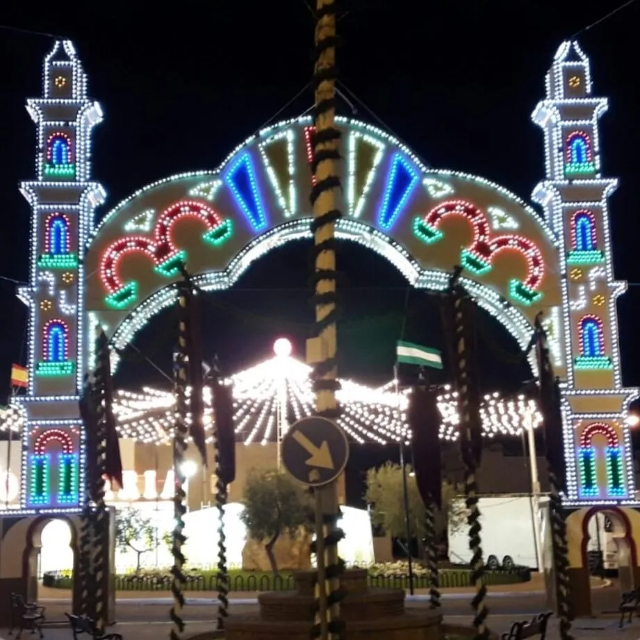 Dentro de nuestros catálogos tanto de Feria como el de Navidad se podrán apreciar las distintas piezas de iluminación de las que disponemos ya sean conjuntos de arcos, pórticos o portadas; así como tiras de led o cortinas que dan lugar a las distintas y variables opciones de iluminaciones. La idea la pone el cliente y nosotros cumplimos sus deseos.